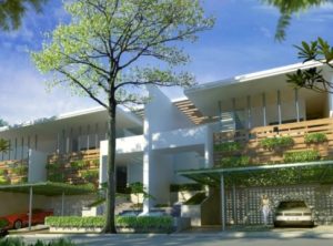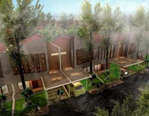Design exteriornya menggunakan fasad kayu dan mengaplikasikan vertical garden untuk menyatukan material dengan nilai estetika sesuai dengan konsep perumahan cluster ‘nature’.