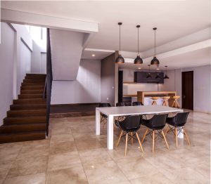 Pola ruang yg dibuat terbuka antar satu ruang dengan ruang lainnya yg menimbulkan kesan luas juga cocok untuk diberikan sentuhan scandinavian yg cendrung terlihat lebih ‘ramping’, sehingga ruangan dalam tetap maksimal dr segi kapasitas dan flexibilitas.